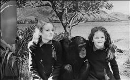 Marilyn (9) with her sister Barbara Silverstone, visiting London Zoo and the chimpanzees.1936,