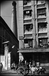 INDIA. Maharashtra. Bombay. 1947. Parel district. Outside one of the best chawls. Cotton mills own it. Only their workers can live there.