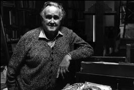 IRELAND. Donegal. Churchill Hill. Painter Derek HILL in his studio.