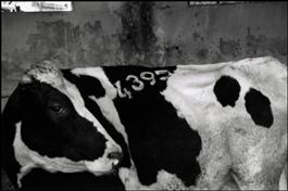 ISRAEL. Jerusalem. 2000. Kosher slaugherhouse. Anata. Live cow before slaughter in outside pen.
