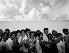 INDIA. Andhra Pradesh state. Hyderabad. People waiting in line to buy a cinema ticket. 1985.