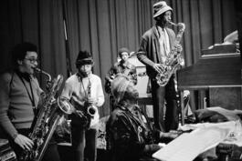 FRANCE. Ile-de-France region. Paris. 9th arrondissement. Le Palace. 8 rue du Faubourg Montmartre. SUN RA ARKESTRA. Rehearsal. Information to be completed. Tuesday February 12th, 1980.