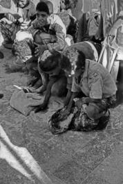 Children scraping up flour in a mobbed flour depot in Port Said....