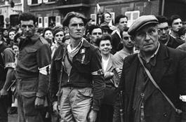 FRANCE. Chartres. August 23rd, 1944. French Resistance fighters listening to Gen. DE GAULLE proclaim the liberation of the town.