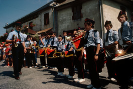 Through villages & towns, the tour is greeted by the local musicians & marionettes.