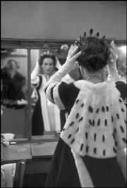FRANCE. Paris. Spring 1953. Dior fashion house. A model before a show.