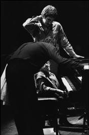 Assis : Michel PETRUCCIANI, pianiste français.
