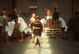 Preparation of "Saint-Sang" Catholic procession. Annual religious event, during the month of May, based on the legend of Christ's blood relic, brought from Jerusalem by the Crusades.