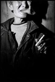 JAPAN. Sanya. 2000. Homeless man smoking.