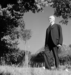 SOUTH AFRICA. Field Marshall Jan Smuts, (African Boer general who fought against the British in the Boer War of 1899-1902), photographed in the garden of Groote Schuur, the official residence of th Prime Minister of S.A. Devils Peak can be seen in the background and the edge of Table Mountain. 1947.