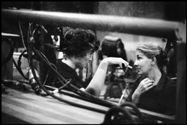 USA. 1960. Script girl Angela ALLEN (left) with photographer Eve ARNOLD on the set of "The Misfits."