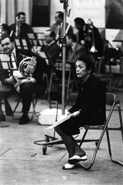 A performance at the Olympia music hall. She always hesitated a little and remained for a short while next to the stage curtain, would then make a few steps forward to get up her courage, and then started to sing. Gradually she lost her stagefright as she got more into the song.