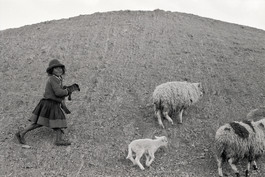 BOLIVIA, Kami, two childrem playing with two sheep.