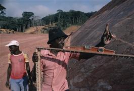 Workers preparing the terraine for the tracks of the transgabonais railroad near Lastourville.