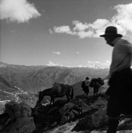 SIKKIM. Jelep La. Pass, between Sikkim and Tibet (4320 m). In the background the Chomo Lhari mountain (7314 m). 1951.