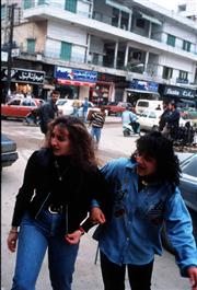 Borj al Barjani. Different dress codes in Hezbollah stronghold. 1997.