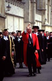 GB. Oxford. President Clinton walks along Catte Street with Roy Jenkins the university Chancellor.