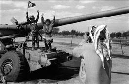 KUWAIT. Gulf War. 1991. Kuwait City. Happy Kuwaities celebrate the liberation of their city.