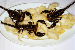 THAILAND. Pattaya. 1998. Scorpion and rice crackers, a local...