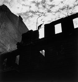 HUNGARY. Budapest. 1948. Man working on a hotel destroyed in World War II.