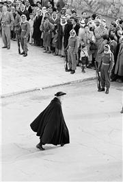 JORDAN. Bethlehem. A priest, late for the service, dashes across Manger Square during High Pontifical Mass. Crowds are held back by Arab Legion soldiers. 1951.