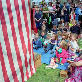 GB.Wiltshire,Downton. Cuckoo Fair on 1st. May to celebrate the begining of Spring. Children watching a Punch and Judy Show.