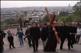 FRANCE. Paris. 18th arrondissement. April 2000. Monseigneur LUSTIGER carries the cross on top of Sacré Coeur church for easter celebrations.