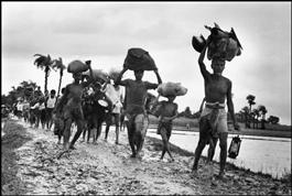 Refugees walking through the fields from the border to Bagda (24 Pargans district, Bangoan sub division). They had been walking for 4 days from Faridpur.