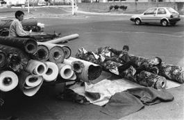 IRELAND. Dublin. Ballymun, North of the City. Poverty in Europe Project. Carpet vendors.