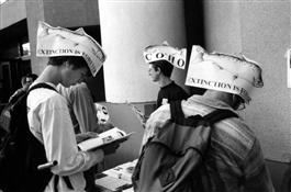 USA. California. Protesters at an Oakland hearing. They are protesting deforestation of California redwoods and Violations of Forest Practices Act by logging companies. 1998.