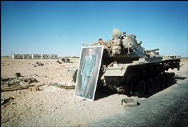EGYPTIAN OCCUPIED TERRITORIES. The Six Day War. 1967. Sinai, destroyed Egyptian tank with portrait of Abdel NASSER.
