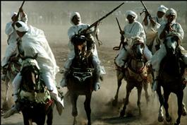 MOROCCO. Near Jdida. Horsemen fire their guns, during the fantasia...
