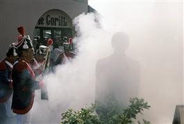 05/The bust of SaintTropez is placed under a floral arch on the town hall square.