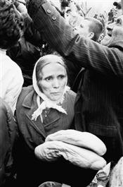 MACEDONIA. Blace. Refugees from Kosovo scramble for bread distributed by the Macedonian Red Cross. 1999.