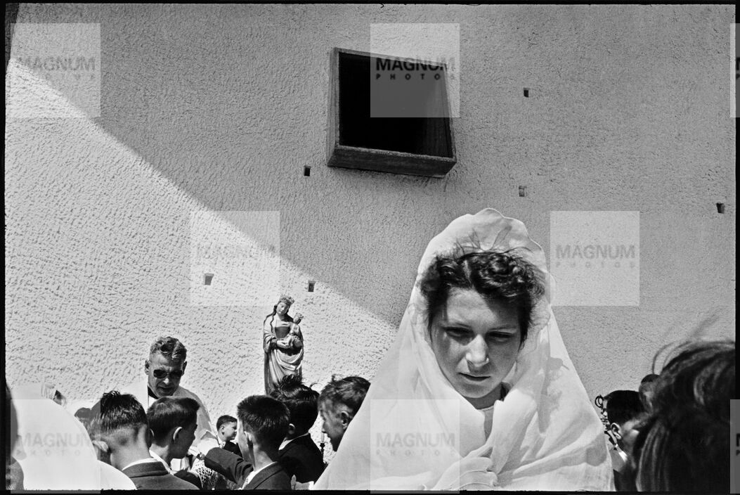 FRANCE. 1955. Mass on the first Sunday after Easter. The chapel is still not fully completed and the statue of Mary stands in front of the chancel wall.