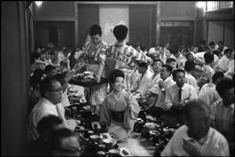 JAPAN. Honshu. Iwate prefecture. Hanamaki. 1965. Hot Springs party for Diet members. After drinking, dancing by Geisha. Later, Diet members themselves join in the dance.