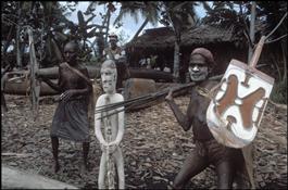 Amanamkai. Asmat women prepare to throw sticks and mud at men during the Pokombu danse.