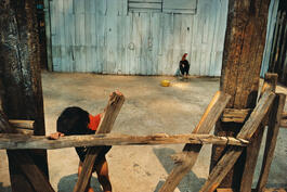 MEXICO. Uruapan. 1984. Boy and rooster in a yard.