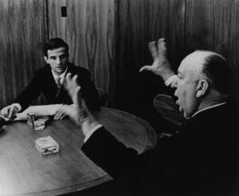 USA. California. French film director François TRUFFAUT (left) and British film director Alfred HITCHCOCK (right). 1962.