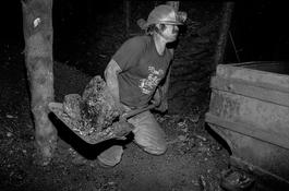 G.B. WALES. Neath Valley. Black mountain coal. Miner hand loading coal - up to 7 tons a day. 1993.
