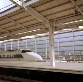 Japan. Kyoto. Kyoto Train Station with a Bullet train.