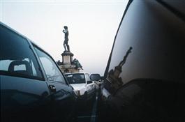 Italy, Florence: parking lotin Piazzale Michelangelo.