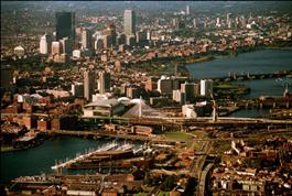 USA. Massachusetts. Boston. Aerial view of Boston showing...