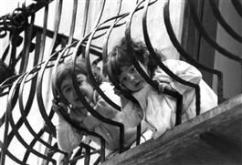 ITALY,Sicily, Noto: little girls in a baroque balconade. (I Siciliani)