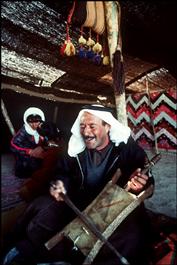 Palmyra/Tadmur. Hadadiyne tribe,Kacem Azzaher,semi nomadic plays his Arrababa,takes tea.
