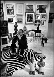 USA. Los Angeles, California. 1960. Oscar-winning director Billy WILDER likes to mix African and modern art in his home. His films include "Double Indemnity" (1943), "The Lost Weekend" (1944), "Sunset Boulevard" (1950), "Stalag 17" (1953), "Some Like It Hot" (1959), and "The Apartment" (1960).