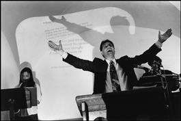 ISRAEL. Jerusalem. 1995. Spirited service at the St Paul Fellowship run by Charistmatic Pentecostals. Hymns to be sung are projected on the wall. They are all copyrighted.