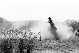 USA. Arizona. Cowboy action shooting. The National Old West Shooting Competition is the meeting place for enthusiasts of the old west. Authenticity of the uniform, firearms, equipment and knowledge of the period is paramount. It is amazing how accurate the modern cowboy can shoot from the back of a fast moving horse even if the target is simply a balloon. 1997.