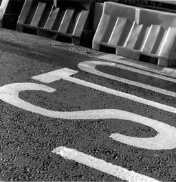 GB. London. The City, financial district. STOP road marking.
