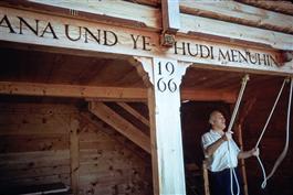 Switzerland. Gstaad. Yehudi MENUHIN (USA) Violinist. Practising...